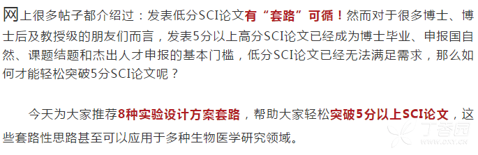 【资源转帖】如何轻松突破5分以上SCI:强烈推荐8种实验设计方案套路!