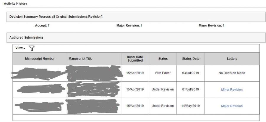 小白第一次投论文,本论文经历了一次大修和一次小修,小修完成后昨天提交,目前状态是with editor, 但Decision Summary 中有 Accept: 1, Minior revision: 1 , Major Revision: 1,请问一下这是怎么回事啊?谢谢!