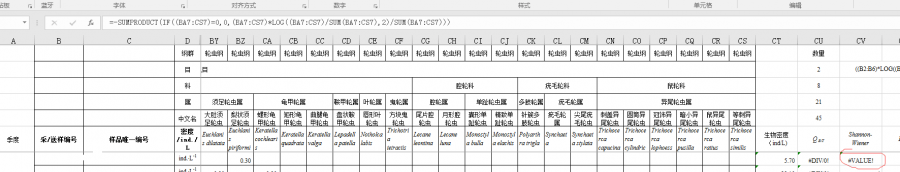 用Excel计算多样性指数的时候,会出现ln(0)无法计算的情况,求高手指点