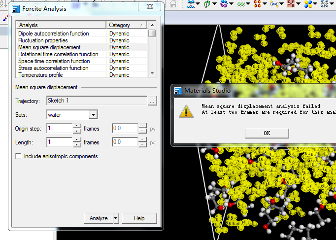 为什么我在求均方根位移的时候会跳出这个提示:Mean square displacement analysis failed. At least two frames are required for this analysis. ,以前的版本也没有这个提示就直接出图了,这个MS8.0的版本咋回事,有人知道原因吗? )0XRT4ICOYXK0)V(%`(X`8N.png |