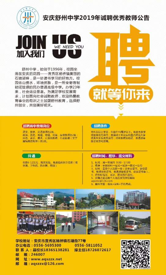安徽省安庆市舒州中学数学、生物、化学教师招聘
