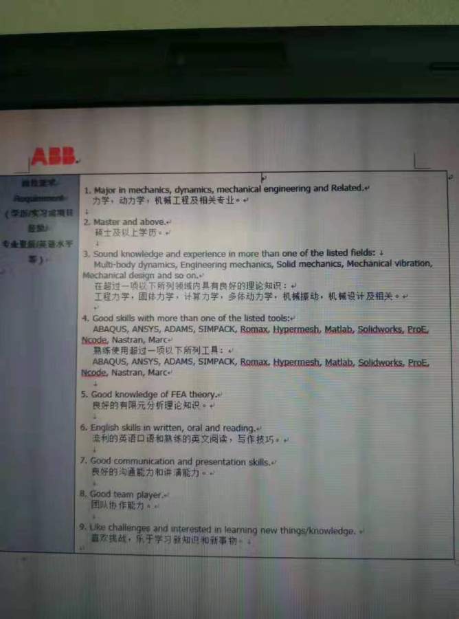 北京外企招聘结构仿真工程师 英语交流佳,熟练掌握abaqus,ansys,adams中的至少一种,能够同时进行多个仿真项目。 有意者请发送简历到ivan-jiyu.wu@cn.abb.com 1.jpg 2.jpg [ 来自版块群 北京 ] |