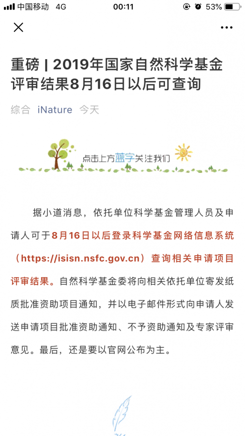 inature公众号发的基金消息 已有4人参与