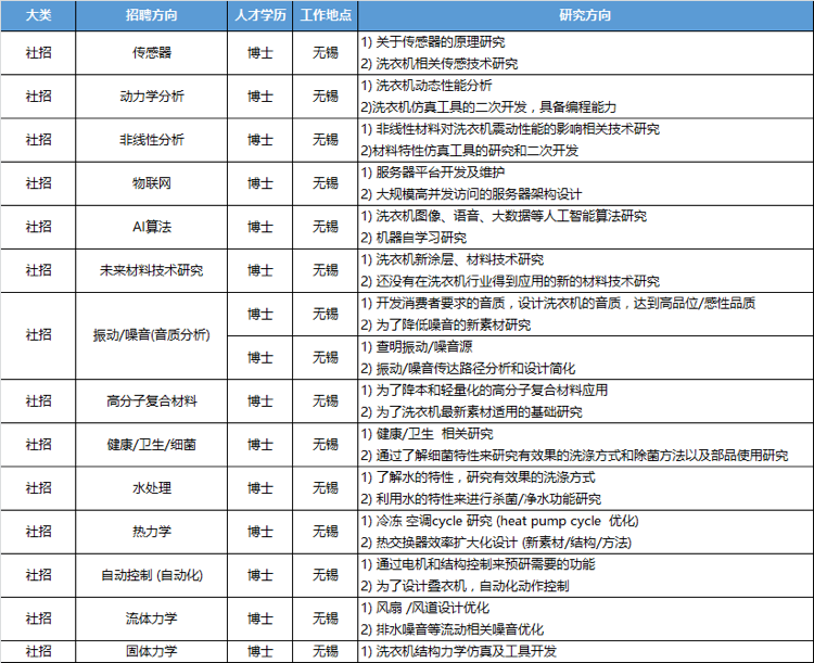 【博士招聘】美的洗衣机事业部/无锡小天鹅股份有限公司