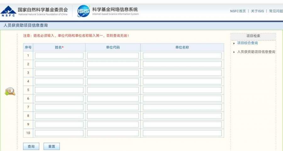 你查的右边,有一个个人资助之类的选项,点那个,只需要填名字,单位名称,即可查询。https://isisn.nsfc.gov.cn/egrant ... -list?locale=zh_CN# 发自小木虫Android客户端 |