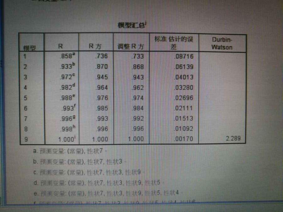 我用spss做的结果是最后将所有的变量都引进去了,最终R的平方为1。然而我想确定几个比较重要的自变量,可以只选前几个,然后用这几个构建方程吗? 发自小木虫Android客户端 |