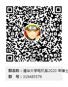 清华大学电机系2020 年博士生招生申请 QQ群,方便各位考友交流,备考。 群号:319485579 点击链接加入群聊【清华大学电机系2020 年】:https://jq.qq.com/?_wv=1027&k=58dY9RF 清华大学电机系2020 年博士生招生申请群二维码.png |