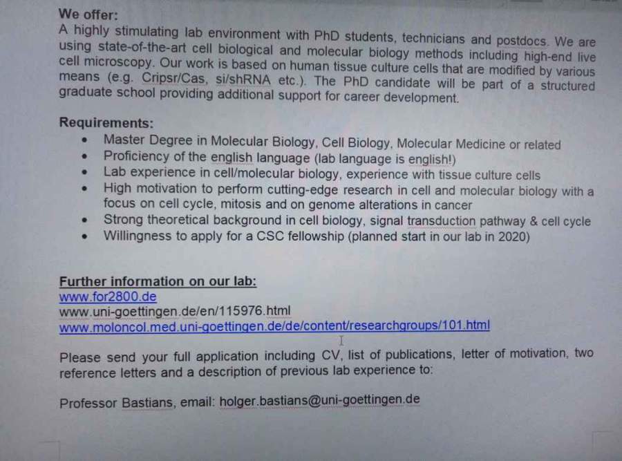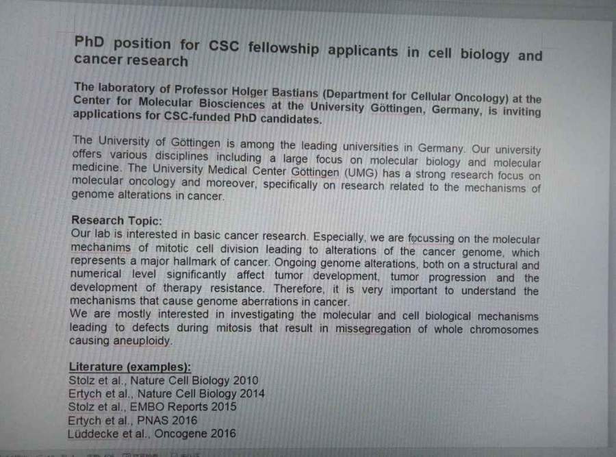 德国哥廷根大学招博士 Advertisement-CSC-Bastians lab 发自小木虫Android客户端 |