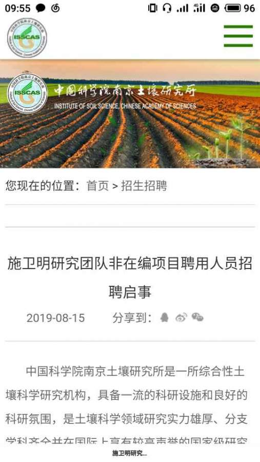 中国科学院南京土壤研究所-施卫明研究团队养分高效方向招聘研究助理
