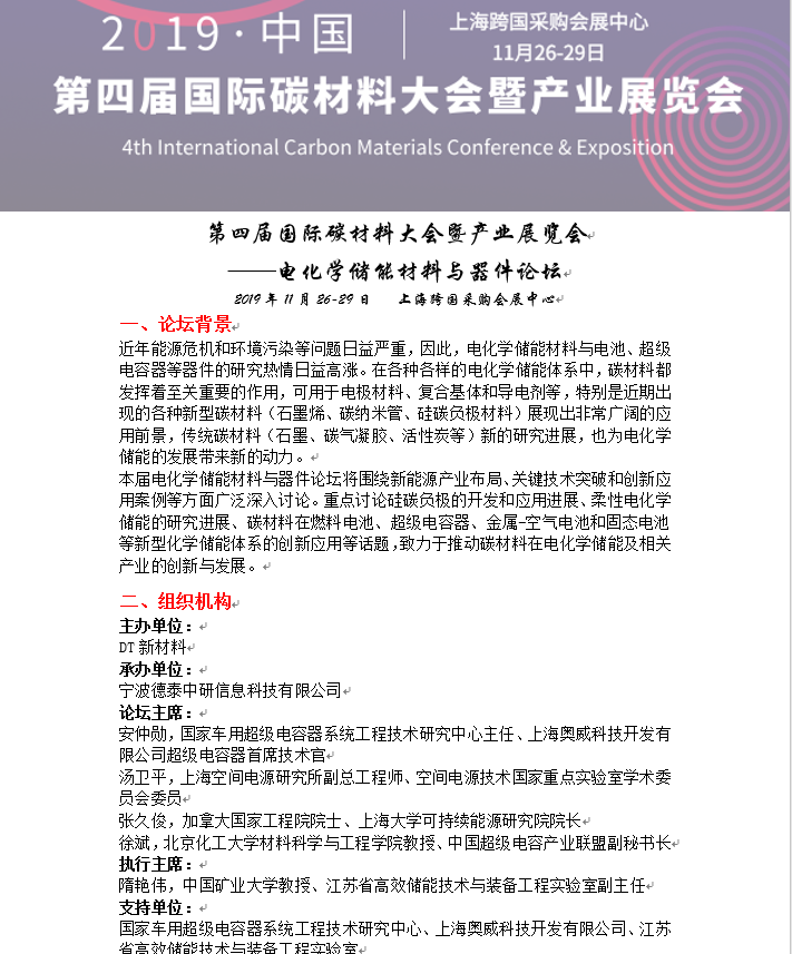 Carbontech电化学储能材料与器件论坛