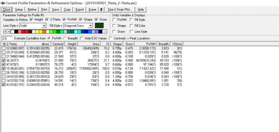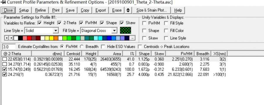 请问,Jade软件XRD曲线拟合报告数据中,哪一列数据代表材料的结晶度啊??
