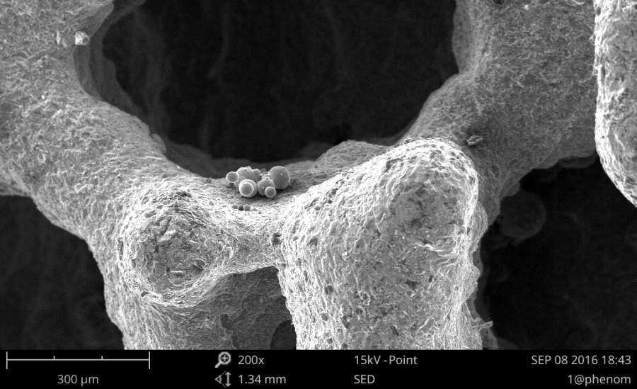 近年来,通过 3D 打印定制骨科植入物的优势得到了大家的普遍认可,但是 3D 打印仍面临技术工艺完善和产品安全性的挑战。 图片来自 ZSFab 官网,分别为 3D 打印股骨柄、髋臼杯、人工椎体 金属粉末的质量对 3D 打印产品的最终质量有着至关重要的作用,其中粉末粒径分布和形貌是两个重要特征。 通过飞纳台式(场发射)扫描电镜和配套粒径分析软件Phenom Prosuite,可以从多个维度对金属粉末进行快速表征。 SEM 形貌学成像 作为表面成像工具,SEM 最普遍的应用就是定性评估 3D 打印粉末的形貌,粘连,形状,圆度,卫星球(大颗粒上附着小颗粒)。 图 1,2 为两个不同供应商的原料粉末。 图 1 整体粒径一致,形状规则圆形,无粘连,无不规则颗粒,形貌特征好。 图1 图 2 颗粒则大小各一,且存在颗粒粘连,卫星球等缺陷。若选用 2 号样品,则势必会影响最终打印产品的质量,进而影响患者的健康安全。 图2. 蓝色为黏连,绿色为卫星球,红色为不圆 颗粒系统分析 定性分析毕竟只能看个大概,而通过飞纳提供的专业的粒径分析系统则可以对粉体进行统计学定量分析。 飞纳颗粒统计分析测量系统学名 Particle Metric,可以对粉末的粒度以及分布,圆度,面积,等 14 项特征参数进行准确分析,并且可以给出 D50,D90 等数据。 不同于激光粒度仪,飞纳颗粒系统是基于扫描电镜图像的分析软件,眼见为实,测量更为精准。 基于背散射或二次电子图像识别,颗粒系统自动对每一颗颗粒的各项特征进行分析(见图 3),从而给出各项特征的柱状分布图,也可以给出两个不同参数的散点分布图(见图 4)。 图3. 颗粒识别示意图 图4 . 当量圆直径柱状分布图,左,按体积(重量算),右,按个数算。 扫描电镜与 3D 打印 在利用金属粉末打印多孔结构的骨科植入物的过程中,金属粉末的质量、打印过程参数设定影响着产品的使用性能,由于金属粉末熔融不彻底,打印完成后的产品会存在金属粉末附着的情况,金属粉末粒径小,若金属粉末去除不彻底,产品在植入人体后,存在金属颗粒脱落的可能,从而引发并发症的风险会大大提升,也同样对产品的安全有效性产生影响。[1] 通过飞纳扫描电子显微镜可以对产品表面进行金属颗粒附着进行快速有效分析,依据此结果进行工艺参数调整,优化产品质量。 图 5 所示为 3D 打印髋关节 SEM 照片,图中可见多个金属颗粒附着,存在安全隐患。 据此,可以通过调整打印过程参数,或增加高压冲洗,超声清洗,等离子冲洗等冲洗工艺,以减小金属附着。 参考文献 [1] 3D 打印骨科植入物金属粉末去除的相关方法介绍 |