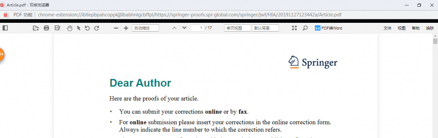 收到springer 的校稿邮件,第一次投不太懂,没搞明白邮件的意思,求大家帮忙看看。我想在线提交,由于没有问题,想直接回答编辑的QUERIES,点了Submit Online 之后不知道怎么操作,界面是下面这样的。不知道怎么在线修改。 QQ图片20191127160734.png |