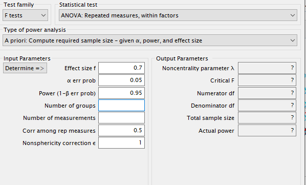 审稿人要求事先估计样本量,在使用G*power软件过程中有些问题不明白,求大佬帮忙。 心理学实验被试内设计3*2*7. 请问图片上面表示的number of measurements到底是指什么?审稿人表示他和我计算的之间存在差异。 不知道哪位可以解决一下? 第二个问题: 审稿人提到标准误差值太小,但实际数据分析就是那么小,不知道如何回复。 微信图片_20191128153615.png |