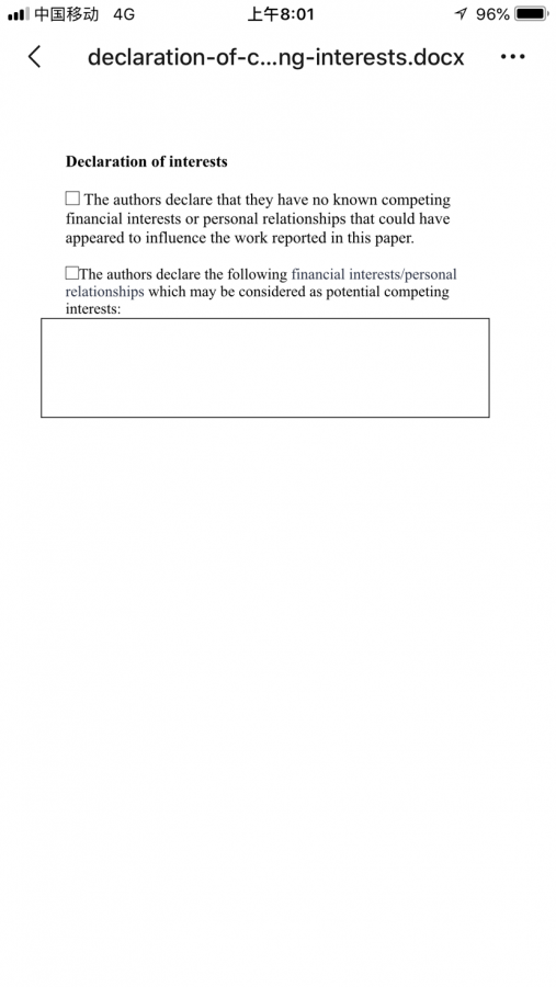 没利益冲突的话在文章末尾参考文献前加上一句there is no conflict of interest.