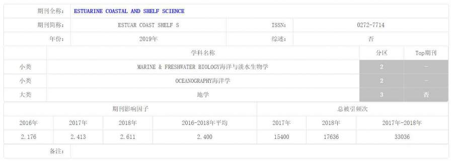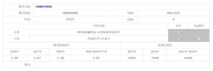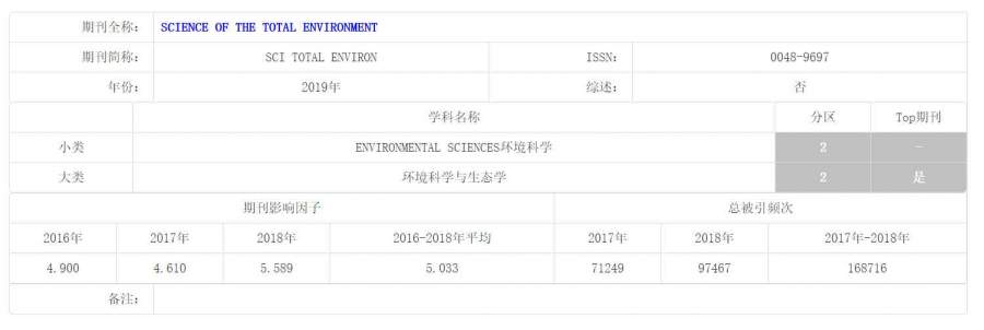 | 帮忙查一下Science of the Total Environment,Chemosphere,Environmental Pollution,Aquatic Toxicology和Estuarine, Coastal and Shelf Science中科院大区分区,一个杂志10个金币,谢谢! |