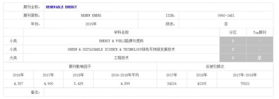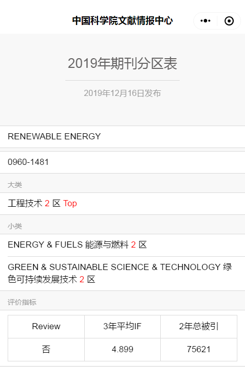 | 帮忙查一下中科院分区2019年,最好有截图 renewable energy谢谢 |