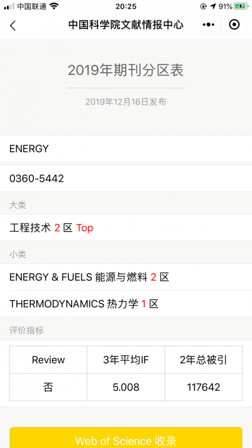 | 求助大家Energy期刊的19年分区,最好有截图,谢谢! |
