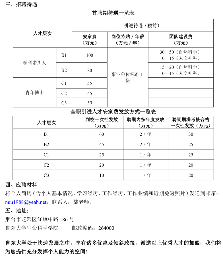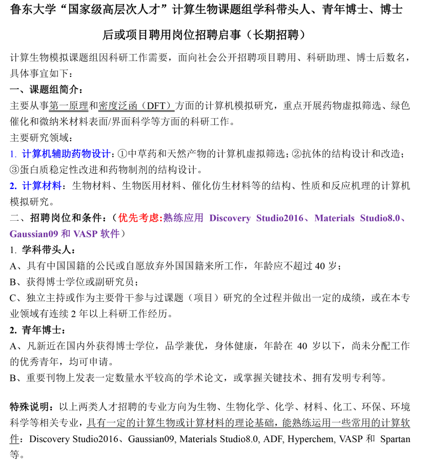 鲁东大学计算生物课题组招聘学科带头人、青年教师、博士后、科研助理——长期招聘