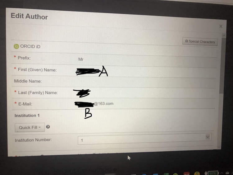 在Rsc系统投稿时,发现前一次邮箱填错了作者姓名,这一次投稿发现一输入这个邮箱就自动添加了上次投稿的信息,请问如何把姓名修改过来 发自小木虫IOS客户端 |