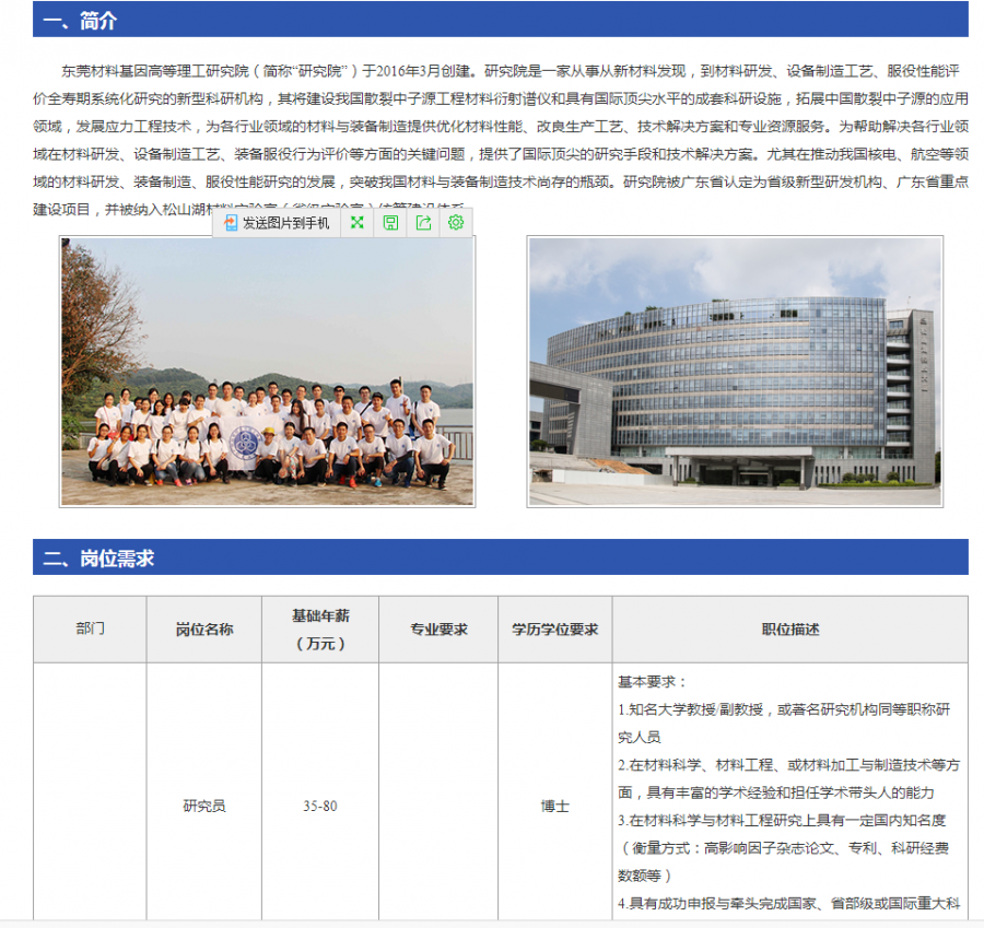 东莞材料基因高等理工研究院2020年度高层次人才招聘公告