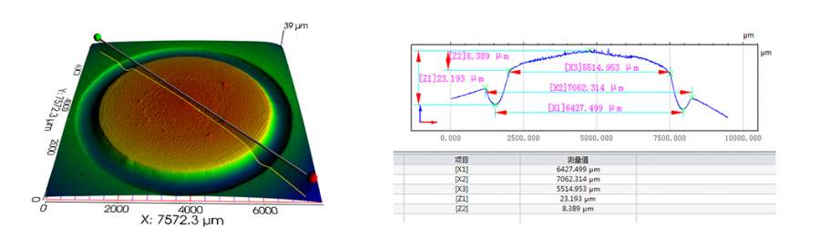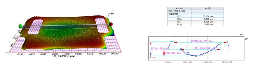 “见一叶而知深秋,窥一斑而见全豹” 这句话用来形容中图仪器SuperView W1光学3D表面轮廓仪,在超精密加工显微测量场景中发挥的作用恰如其分。 大多数的场景中,只需检测一个数十、数百微米的区域,即可取得“见微知著”的效果,但在少数需要检测超精密器件表面全貌的场景中,借助中图仪器SuperView W1光学3D表面轮廓仪的自动拼接功能,就能够快速实现大区域、高精度的测量。 场景一:超光滑的弧形表面 上图是一款旋转抛物面零件,用于微小位移和角度检测,其表面具有超光滑、高反、凹面弧形特征,针对其凹面弧形的检测需求,现有的显微测量仪器中,原子力显微镜和共聚焦显微镜,均分别因有损测量或分辨率不够的原因而排除,只有以白光干涉为原理的光学3D表面轮廓仪,能同时满足无损、超高分辨率、耐高反等条件。 针对完成样品超光滑凹面弧形扫描所需同时满足的高精度、大扫描范围的需求,中图仪器SuperView W1的复合型EPSI重建算法,解决了传统相移法PSI扫描范围小、垂直法VSI精度低的双重缺点。在自动拼接模块下,只需要确定起点和终点,即可自动扫描,完美重建其超光滑的表面区域,不见一丝重叠缝隙。 场景二:粗糙的特征表面 上图是涂覆在电极棒的催化剂表面全景图,整体尺寸在7mm左右,中心的催化剂区域呈低反射率特点,而圆环外呈高反射率特点,整体的轮廓尺寸和微观的轮廓起伏反映了涂覆的质量。 根据客户精度要求,可将重建算法切换为高速扫描的FVSI重建算法,并可依据表面粗糙程度,选择不同步距进行速度调节。 场景三:粗糙的有孔洞特征平面 上图为手机插卡槽处的金属薄片模块,需要测量不含凹面区域的表面轮廓和平整度,因其表面较为粗糙且指定了测量区域,可使用高速FVSI算法,并在拼接测量设定时,使用地图导航功能,在扫描时即可自动跳过凹面区域完成其余整体形貌的拼接测量。 自动拼接功能的使用,并不局限在上述三种案例当中,光滑或是粗糙、平面或是异形结构,当必须测量超出适配镜头下的单视场区域时,都可以采用自动拼接,而中图仪器SuperView W1光学3D表面轮廓仪,可根据不同表面特点进行重建算法的切换,无论何种形貌,都可生成“天衣无缝”的3D全景。 |