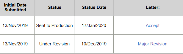 对于染整人来说,这个杂志发表真心不易,做论文真的跟造长城一样,一砖一砌,艰辛不已。所幸的是这个杂志还是很高效,投稿20天就有回音了,弄了个大修,经过15天的回修,还经历了元旦节日,不到一个月就通知接收了 紧张的心也就放下了,超开心!2Q5J1@MNP(IO8YGPSKYIZD3.png |