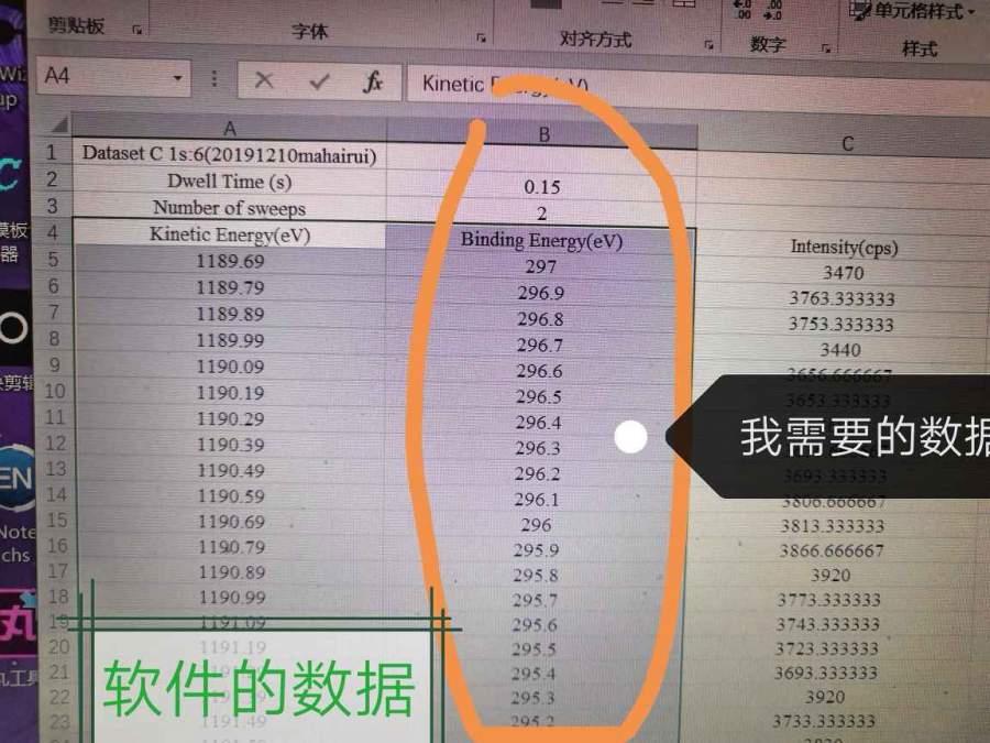 使用avantage打开VMS之后发现碳的峰值1000多,查看excel文件发现kinetic energy 是1000多,而我需要的是binding energy .avantage是没有没有识别出binding energy吗,该怎么处理。