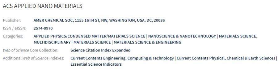 ACS APPLIED NANO MATERIALS被SCIE收录已有7人参与