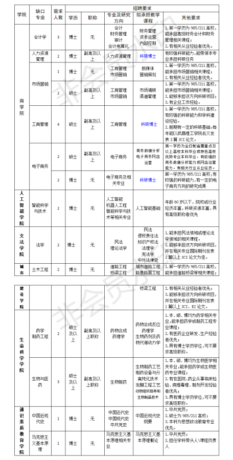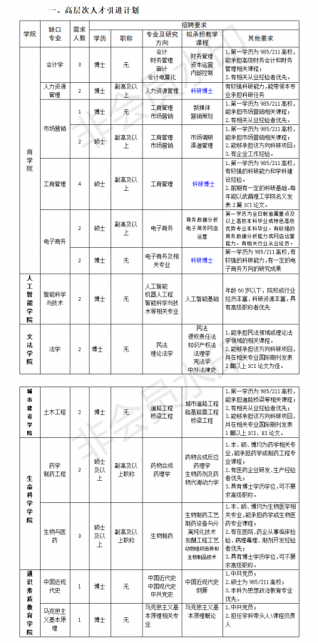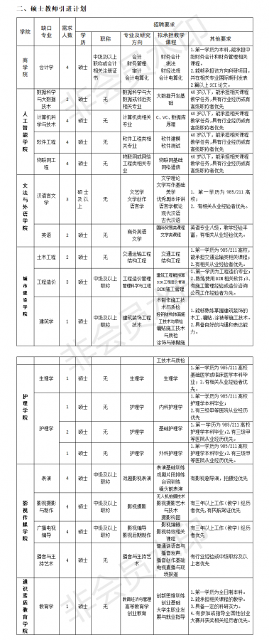 武昌理工学院2020年上半年招聘简章 武昌理工学院是经教育部批准设置的普通本科高校,经20余年发展,已成为一所以工学、管理学为主、多学科协调发展的知名高校。学校位于“武汉•中国光谷”,占地一千余亩,建筑面积40余万平方米。学校依山傍水,座落在美丽的梅南山麓,我国最大的城中湖汤逊湖三面环抱,欧式风格校园建筑掩映在青山绿树之中,校园风景如画,被公认为全国十大美丽湖景校园之一。 根据学校学科建设和发展需要,现面向海内外引进优秀人才若干名。 一、需求专业 (一)高层次人才:会计学、人力资源管理、市场营销、工商管理、电子商务、智能科学与技术、法学、土木工程、药学、制药工程、生物与医药、中国近现代史、马克思主义基本原理 (二)硕士教师:会计学、数据科学与大数据技术、计算机科学与技术、软件工程、物联网工程、汉语言文学、英语、土木工程、工程造价、建筑学、生理学、护理学、表演、影视摄影与制作、广播电视编导、播音与主持艺术、教育学 二、薪酬待遇及相关事项 (一)薪酬待遇 我们将为您提供包括但不限于以下待遇: 1.学校将为您提供湖北同类高校领先的薪酬待遇(以双方签订的协议为准)。 2.进校后为保障个人科研活动的开展,学校根据个人入校后科研成果奖励丰厚的科研奖金。 3.享受学校规定的其他福利。 (二)学校根据应聘者提供的材料进行资格审查。请应聘者务必保持通讯工具畅通,笔试、面试时间另行通知。 三、应聘方式 (一)学校地址:武汉市江夏区江夏大道16号 (二)网址:https://www.wut.edu.cn/ (三)有意者请将简历投递至我校招聘邮箱:znszc10@126.com(高层次人才)、znszc07@126.com(硕士教师岗位)。邮件主题及邮件附件中添加的应聘简历、证明材料请命名为“应聘岗位+专业+学历+姓名+毕业学校”。 人事处汇同学院对应聘人员进行初审,初审合格后将电话通知应聘者来校面试、笔试或试讲,根据应聘者的条件和综合表现,择优录用。 (四)联系方式:罗老师 027-81652876 王老师 027-81652273 四、应聘时限 自公告发布之日起,至2020年5月30日止。 2020年武昌理工学院高层次人才引进计划.png 1、2020年武昌理工学院高层次人才引进计划.png 2、2020年武昌理工学院硕士教师引进计划.png [ 来自版块群 湖北 ] |