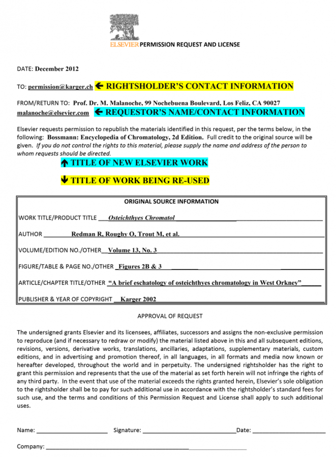 When requesting permission to re-use material in your forthcoming Elsevier journal article or book chapter, you may be able to use our permission request form which asks that the rightsholder grant to Elsevier the following rights: this and all subsequent editions, revisions, versions, derivative works, translations, ancillaries, adaptations, supplementary materials, and custom editions; all languages; all formats and media now known or hereafter developed; worldwide distribution in perpetuity.