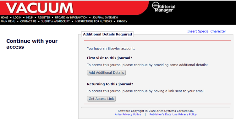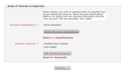 就是在第一次进入VACUUM期刊主页时,需要进行添加那个身份细节,其中在选择从事领域时,选项界面每次都会刷不出来,请问这是为什么?难道是因为这段时间,期刊的系统在升级? 发自小木虫IOS客户端 |