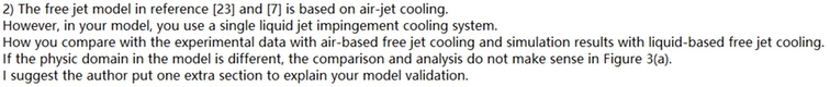 主要是引用的别人的实验数据来验证我的仿真湍流模型,别人做的是气态工质实验,我验证模型时是根据实验参数验证的。但我文章中用的是液态工质,审稿人说我工质不同,这种验证没有意义。求教怎么回复比较好,现在是导师没有实验,也找不到对应的液态实验数据对比。只能硬着头皮回复。