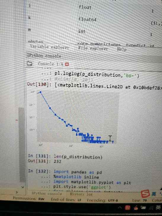 求助大家 我的网络是无标度网络,但是幂律拟合图形一直画不出来 以下是我画的度分布双对数图 还有幂率拟合图的代码 但是画出来的拟合图竟然是这样 有大神知道原因所在嘛?多谢啦!十万火急! 发自小木虫Android客户端 |