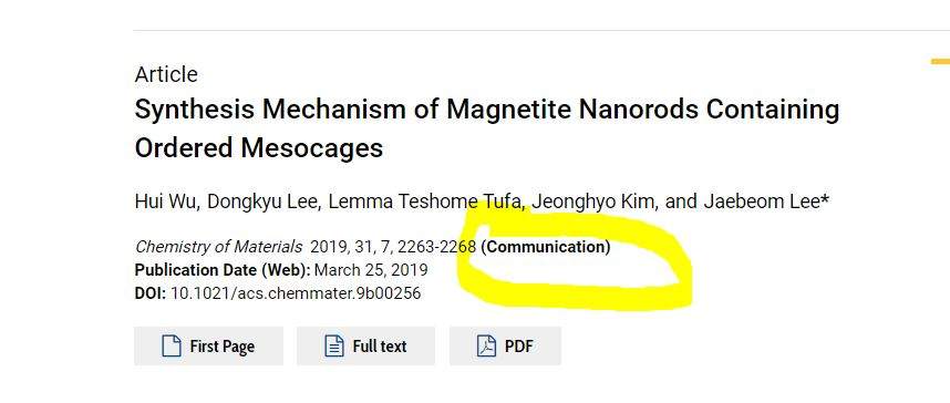 大家好,本人最近写了一篇论文,相投Chem Mater 的Communications,现在有个问题还不是很明白,想请教一下各位,谢谢! 为什么投稿的类型里面没有communication 选项? 图片1. 但是我看主页的最新文章里面有communication的文章?图片2. 2147F5CD-7EE9-4512-8387-3A2E71B67456.jpg 捕获.JPG |