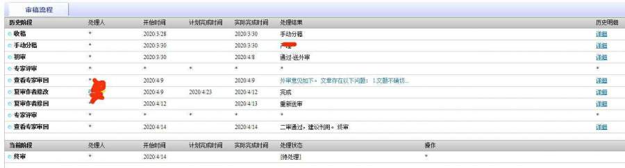 外审给了已经,说文章逻辑性较差,叫改一下摘要前言,和一些小的格式错误,改了以后复审专家一天审完意见是:二审通过建议刊用,终审。好几天了也没消息