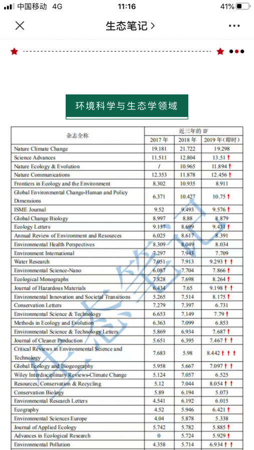 环境,生态,农林部分2019年的最新即时if(截止时间4.26)已经发布,大家需要查看的可以去微信公众号,生态笔记,里面,查阅。 发自小木虫IOS客户端 |
