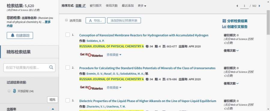 大佬们,能不能帮忙登录web of science查一下Russian journal of physical chemistry A被sci收录到哪一期了?非常重要,感谢感谢!! 发自小木虫Android客户端 |