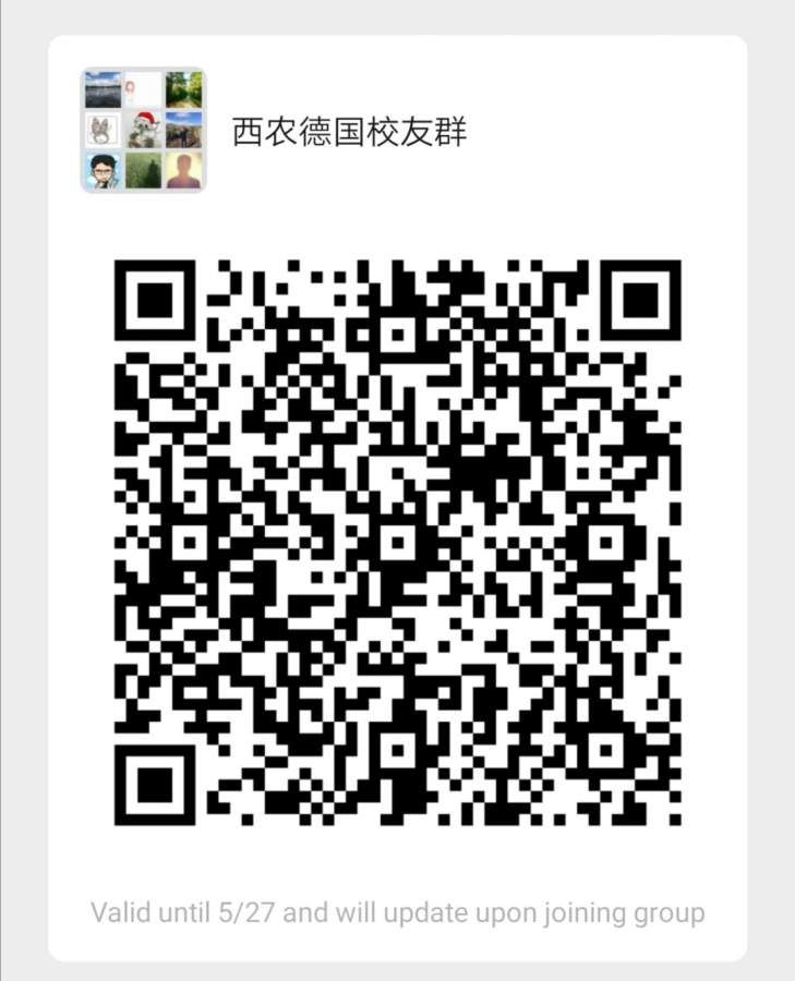 校友们好,西北农林科技大学德国校友们建了一个群,方便大家交流,为母校争光。 如果qr code过期了可以加我的微信,拉你进群。微信账号和发帖号是一样的 ![]() Screenshot_20200520_114857.jpg |