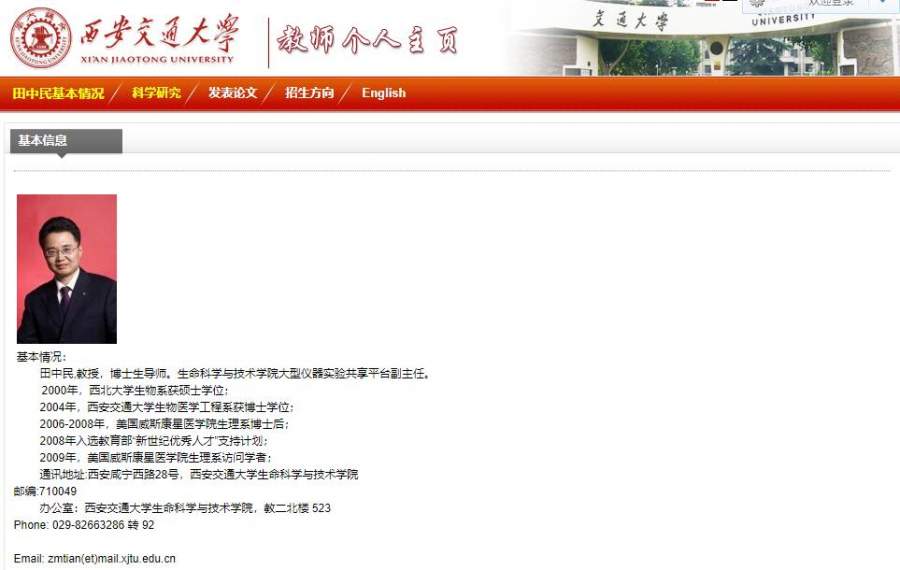 西安交通大学田中民、杨哲课题组硕士推免生招生简介 田中民,教授,博士生导师,教育部新世纪优秀人才支持计划,中国生理学会肾脏专业委员会委员,主持国家及省部级项目9项,主要研究方向:1.盐敏感高血压的差异蛋白质组学与代谢组学;2. 盐敏感高血压的药物靶标筛选以及诊断试剂盒开发;3. 生物质谱分析技术及食品安全检测;4. 盐敏感高血压的生物信息学分析。 个人主页:https://gr.xjtu.edu.cn/web/zmtian 杨哲,副教授,硕士生导师,西安交通大学“十大学术新人”,主要从事生物材料、药物控释以及相关生物评价的研究工作,在高分子材料合成、纳米载体的制备、分子生物学评价、细胞与动物实验等方面都有丰富的研究经验。目前主持国家及省部级项目7项,已发表 SCI 收录期刊论文三十余篇,其中以第一作者及通讯作者发表SCI论文20余篇,包括纳米技术及高分子材料领域著名期刊Biomaterials, Theranostics, Nanoscale以及Macromolecules等,获 3项国家发明专利、1件实用新型专利。H-index:14 个人主页:https://gr.xjtu.edu.cn/web/yangzhe 现招收化学、材料学、生物学、医学、药学方向具有保研资格的推免生,望有意向同学将本人简历发送至 yangzhe@xjtu.edu.cn,邮件标题注明:本人姓名+毕业学校+所学专业。 西安交通大学-田中民教授.jpg 西安交通大学-杨哲副教授.jpg |