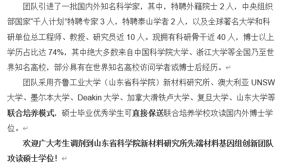 齐鲁工业大学(山东省科学院)先端材料基因组创新团队硕士研究生调剂简章