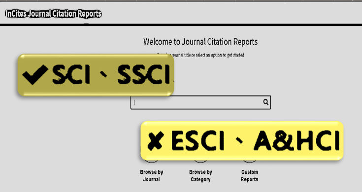 最容易被误导的是Emerging Sources Citation Index (ESCI)期刊,ESCI代表的是SCIE、SSCI及AHCI的候选期刊,它们符合质量标准,但仍需进一步观察是否达到高影响力的标准。当然,若质量下降的期刊,也可能会从SCIE、SSCI及AHCI期刊转移到 ESCI。至于如何得知哪些期刊收录在ESCI及AHCI,详见Master Journal List的下载区(欲下载资料前,请先注册账号登入)。