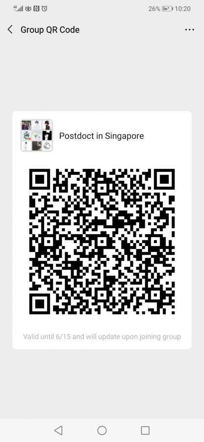 发现小木虫也没有个新加坡博后交流群,现建立微信群有助于大家快速的交流与学习,如何申请新加坡博后,签证问题,还有那边的生活情况,有兴趣的同学可以加入讨论,分享你的经验 WeChat Image_20200530090058.jpg |