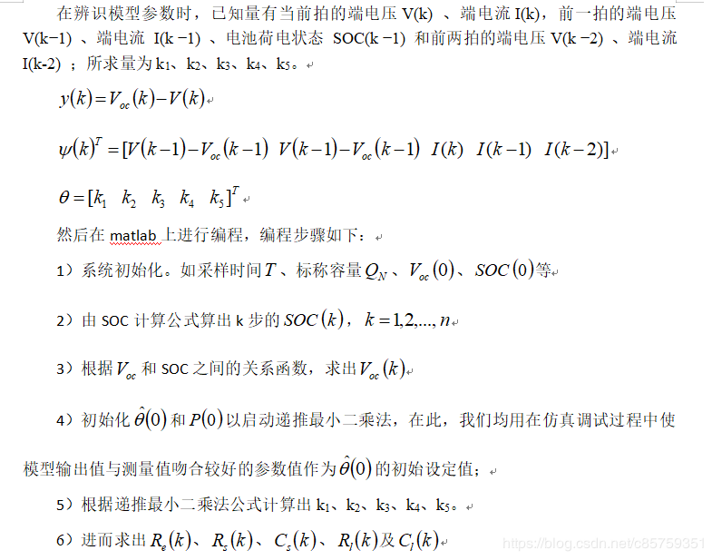 基于遗忘因子的最小二乘法电池参数辨识