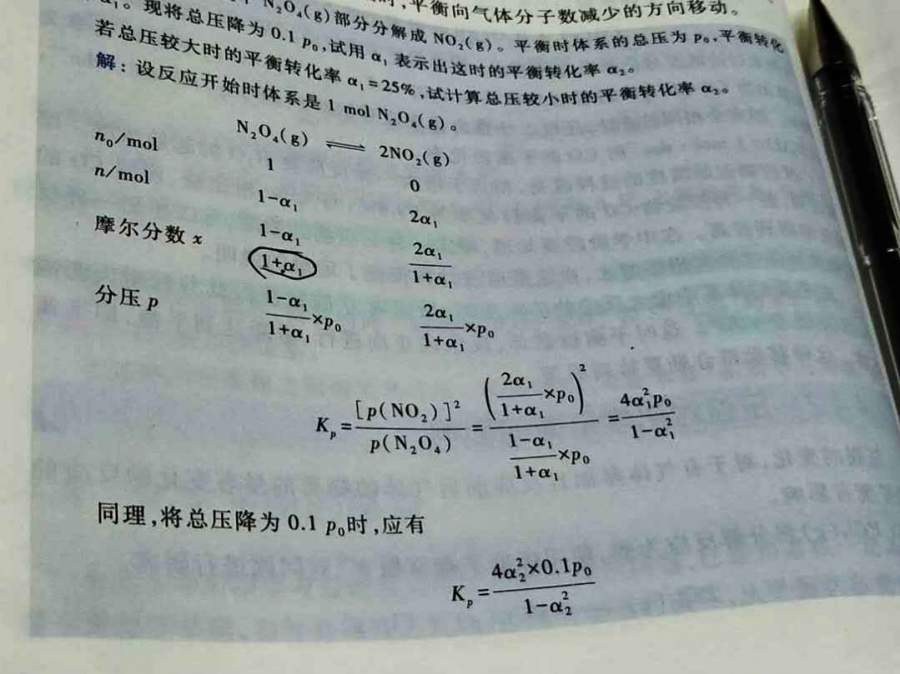 各位看一下这道题,不明白为什么分子摩尔总数为什么是1+α?求解释??? 发自小木虫Android客户端 |