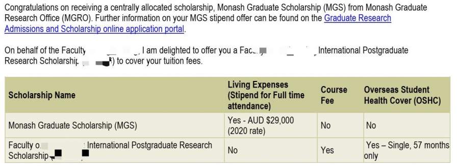 今天收到了monash的邮件,是会给我发放两种奖学金,cover掉生活费和学费医疗保险,我理解的应该没有错吧![]() ![]() 这个算不算是monash的全奖啊,对这方面了解的不是很清楚 微信图片_20200610013314.jpg |