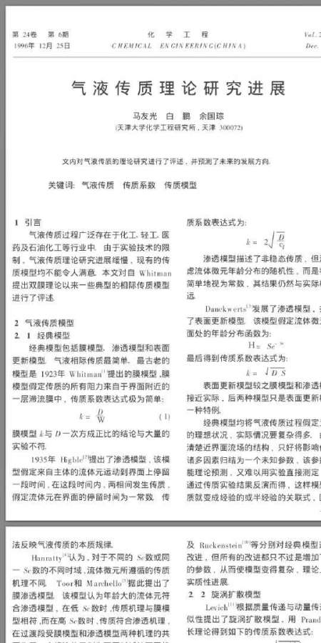 求指教!!!! 在气液传质经典模型中的膜模型和渗透模型计算气液传质系数中,膜模型公式中的膜厚度和渗透模型中的表面停留时间,这两个参数怎么计算啊,或者说有什么方法可以得出?求膜厚度和表面停留时间的详细计算方法和相关文献介绍。 拜托大佬们,急!! 发自小木虫Android客户端 |