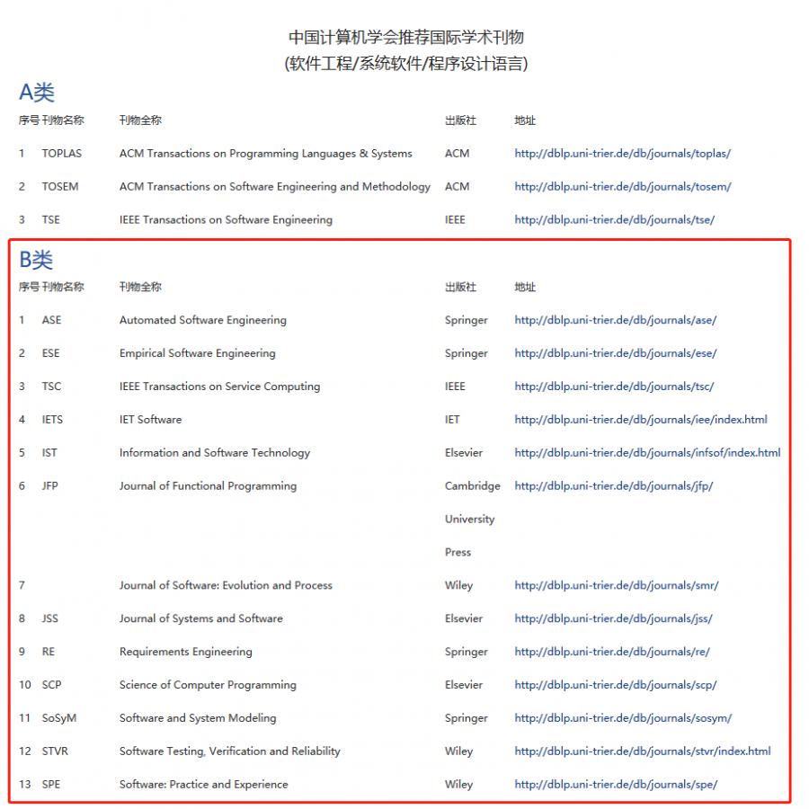 CCF B刊((软件工程/系统软件/程序设计语言))哪些容易一些?