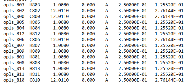 各位老师 我问一下做gmx的时候用LigParGen生成两个小分子 但是我发现他们的atomtypes编号会重复 然后我用grompp打包的时候就会说重复命名,请问一下怎么自己修改呢 TIM图片20200616143250.png TIM图片20200616143303.png |