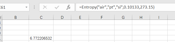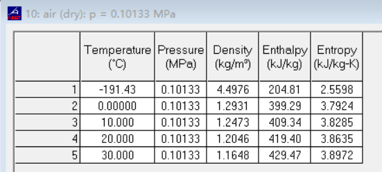 利用excel调用refprop中空气的物性时,excel上显示的数值跟refprop上不一样,有些数值差了接近一倍,但其他工质都没问题。是我空气的命令输入错误了吗?求解。 1592359192(1).png 1592359231(1).png |